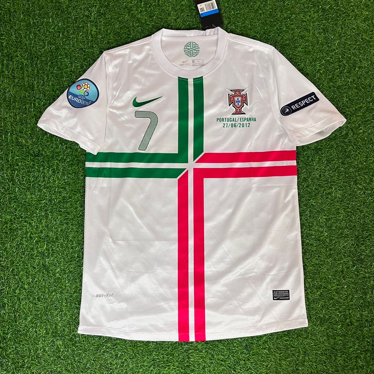 Relive Portugal’s thrilling EURO 2012 campaign with the iconic #7 Cristiano Ronaldo retro jersey. This kit captures the electrifying brilliance of Ronaldo’s leadership and goal-scoring prowess, driving Portugal to the semi-finals with unforgettable moments on the European stage. Customize your jersey with other key players from the 2012 squad, including João Moutinho, Nani, and Pepe, to make it truly your own.