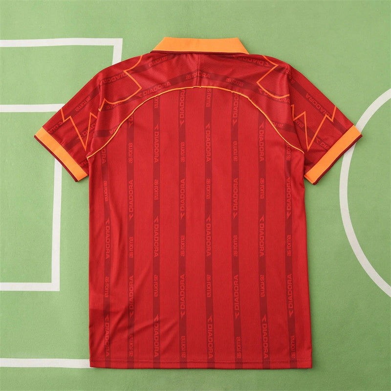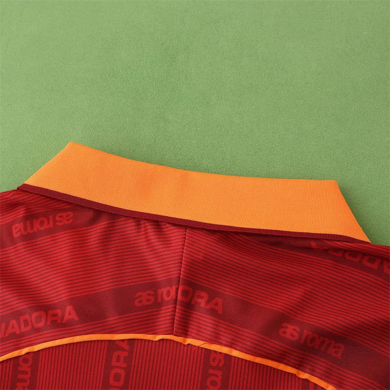 Feel the nostalgia of the A.S. Roma 99/00 home jersey! Relive the glory days of the iconic Serie A team with this retro design. Made with high-quality material for maximum comfort and durability. Perfect for any fan or collector! Score this jersey now and show your support for the Giallorossi!
