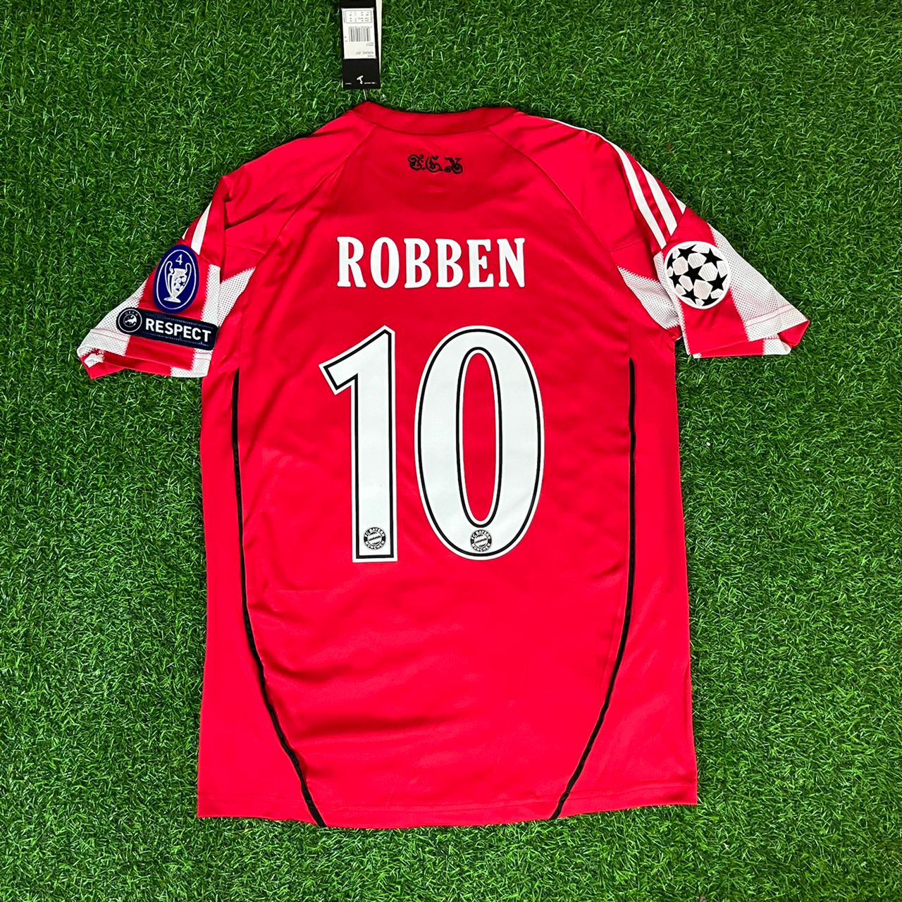 The jersey features Bayern’s classic red design, representing the 2012/13 season when the team achieved an unprecedented treble by winning the Bundesliga, DFB-Pokal, and the Champions League. Alongside Robben’s brilliance, this team was powered by footballing icons such as Franck Ribéry, Thomas Müller, Philipp Lahm, Manuel Neuer, Bastian Schweinsteiger, and Mario Mandzukic, making it one of the greatest squads in football history.