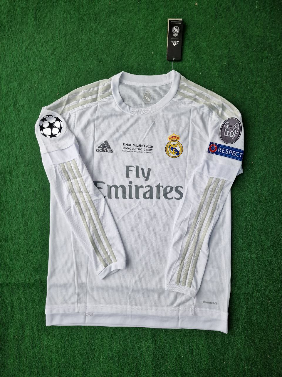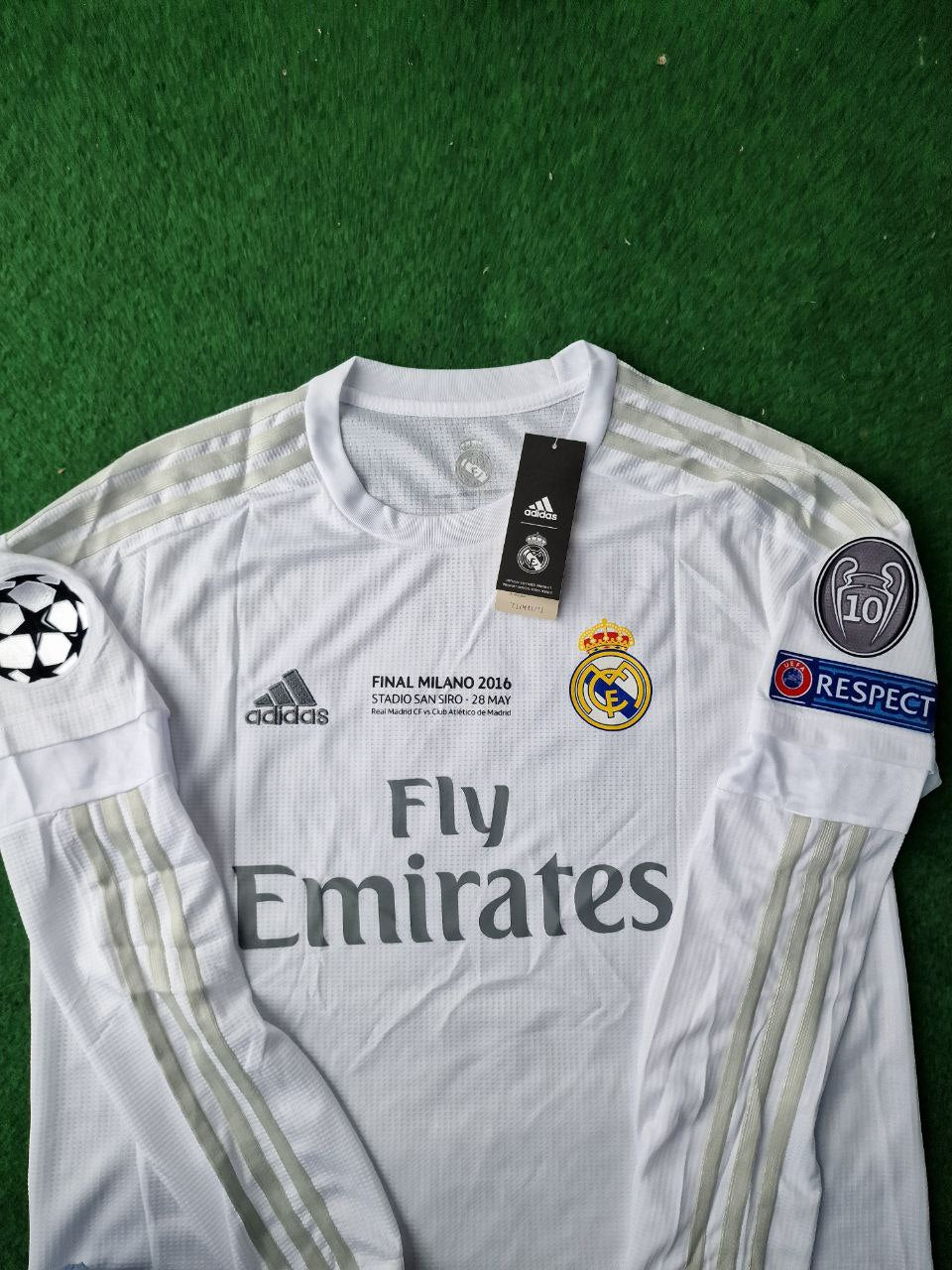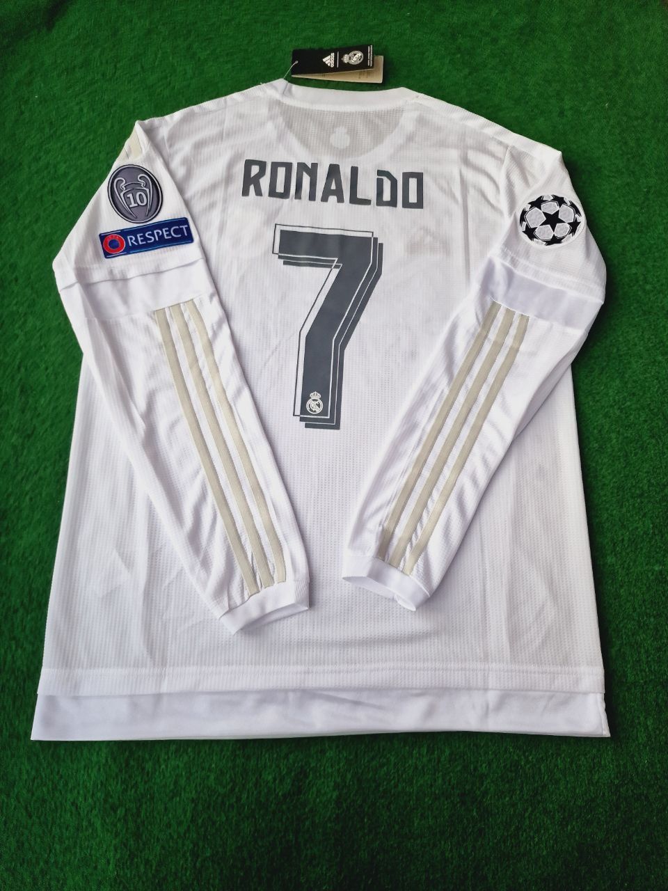 Celebrate one of football's greatest moments with the Cristiano Ronaldo 7 Real Madrid 2016 Champions League Final Long Sleeve Jersey. Designed to honor Ronaldo’s iconic performance, this kit combines authentic style with comfort for fans and collectors alike. Its long sleeves provide extra coverage, making it perfect for cooler game days, while the detailed design captures the spirit of Real Madrid’s triumphant victory. Wear this jersey and connect with the legacy of a true football legend.