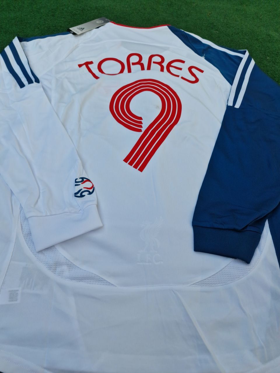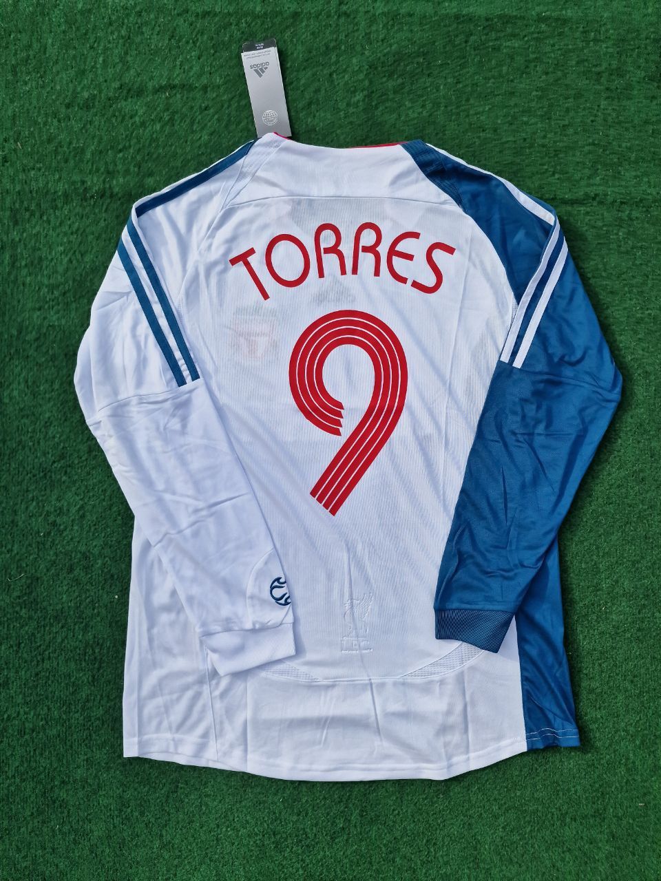 Show your support for Liverpool with this retro jersey featuring the iconic Fernando Torres! The white and blue design adds a touch of classic style to your wardrobe. This long sleeve jersey is perfect for game day or everyday wear, making you a standout fan. Go Liverpool!