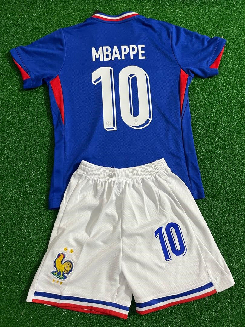 Kylian Mbappe's France Kids kit is a must-have for young fans! With a stylish design and high-quality materials, this kit is perfect for showing off your love for the French football star. Inspire the next generation to follow their dreams with this Kindertrikot maillot enfant kindertrui.