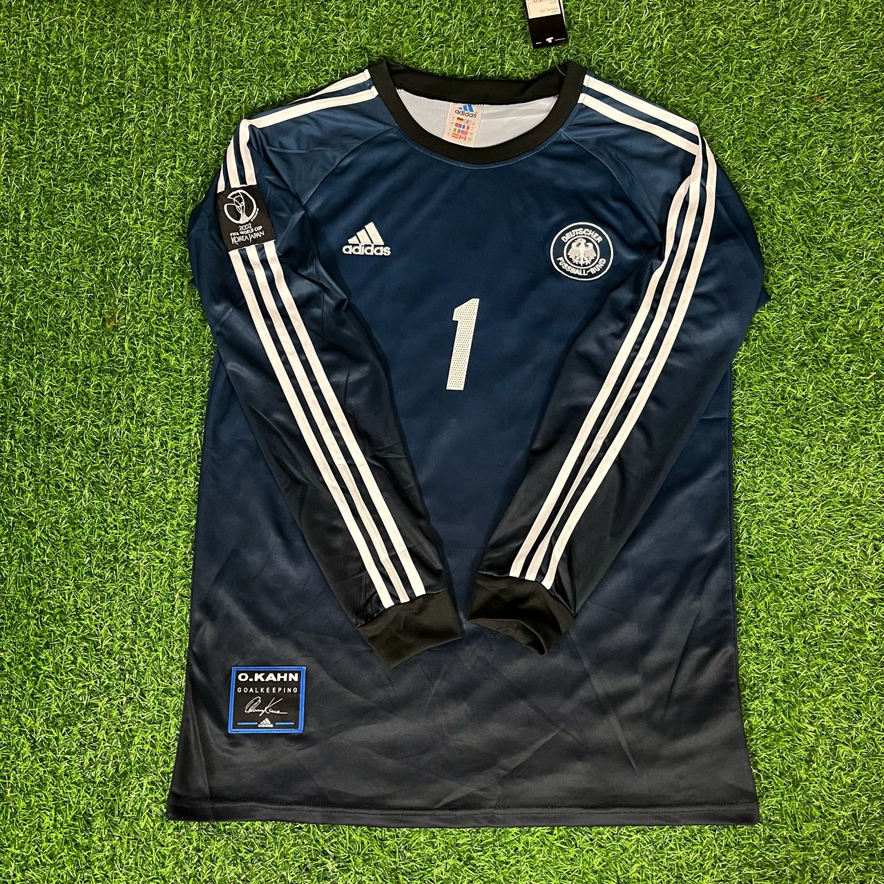 Celebrate the unforgettable performance of Oliver Kahn at the 2002 World Cup with this retro Germany goalkeeper kit. Known for his commanding presence, unmatched reflexes, and leadership, Kahn led Germany to the final and earned the Golden Ball – a rare honor for a goalkeeper. A must-have jersey for fans of goalkeeping greatness and German football heritage.