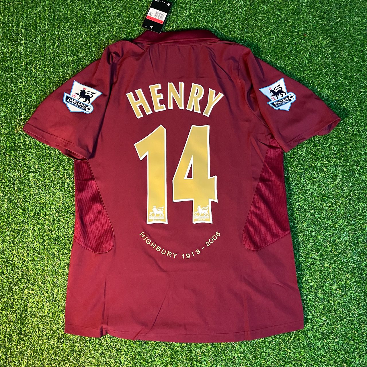 Celebrate Arsenal's rich history with the iconic 2006 Thierry Henry Highbury burgundy retro football jersey. Worn during Arsenal’s final season at Highbury, this burgundy jersey honors the club’s legendary farewell to the historic stadium. The shirt symbolizes Thierry Henry’s dominance as Arsenal's top scorer, who, alongside key players like Dennis Bergkamp, Robert Pirès, and Cesc Fàbregas, helped define this era. Collectors and football fans will cherish this classic shirt as it represents a golden period in Arsenal's legacy. Perfect for any Gunners supporter looking to relive the magic of 2006.