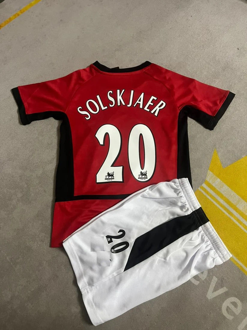 Ole Gunnar Solskjaer Manchester United Retro Kids Football Jersey Kit