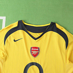Relive the glory of Arsenal's 2005/2006 season with this sleek and stylish Yellow Retro Jersey! The iconic design boasts vibrant yellow color and classic Arsenal crest, perfect for showing off your team pride. Whether you're on the field or cheering from the stands, this jersey is sure to make a statement. Go Gunners!
