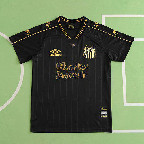 Celebrate the unique style of Neymar Jr with this Santos Charlie Brown Black Retro Jersey, a rare and special edition inspired by one of the most iconic kits in Santos FC history. A must-have for football fans and collectors!