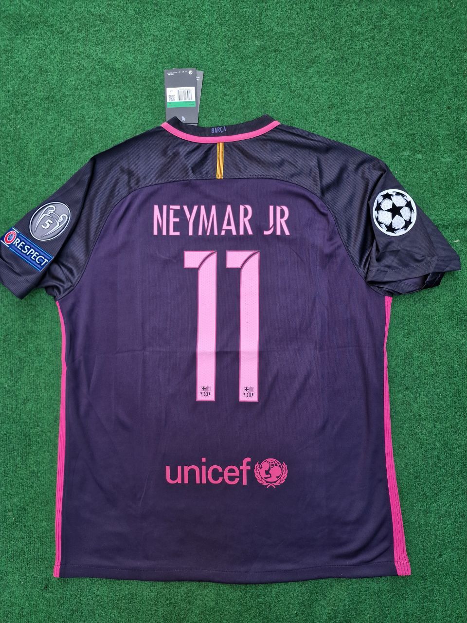 Let your child celebrate Neymar Jr's dazzling performances with this Barcelona 2016/2017 Away Jersey, featuring the bold black and pink design from one of his standout seasons at the club.