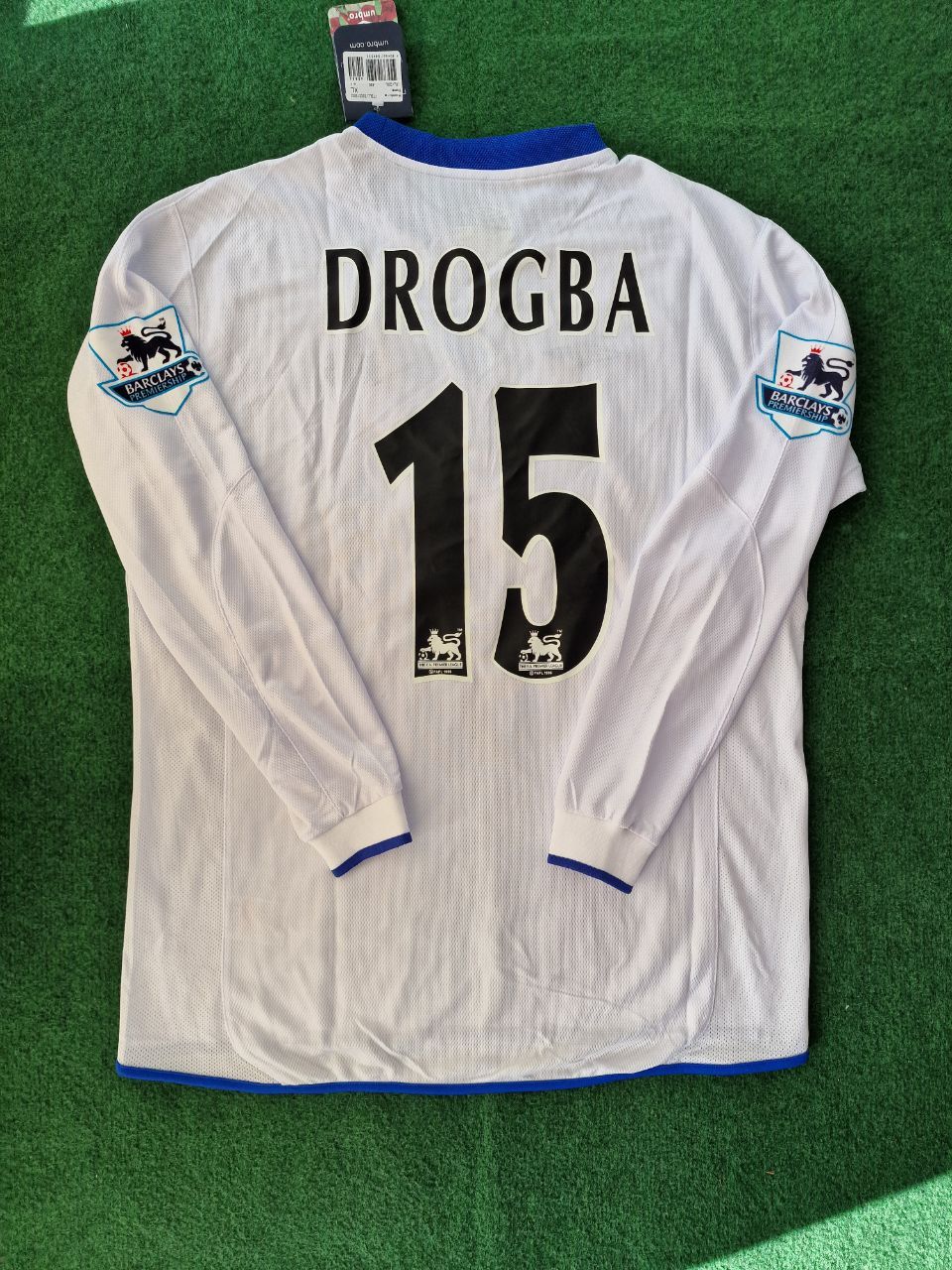 Wear the legendary Didier Drogba Chelsea Away 2004 Retro Long Sleeve Football Jersey with pride. Featuring the iconic Premier League patch, this jersey is a must-have for any fan. Relive the glory days and show off your love for the sport. Upgrade your collection with this classic jersey now!
