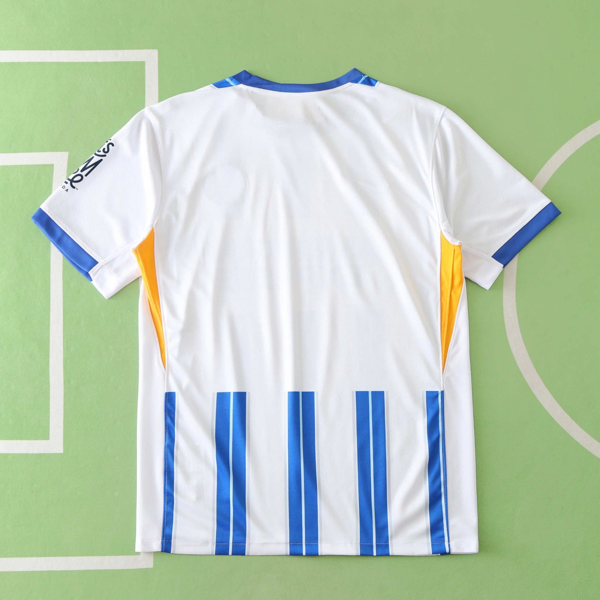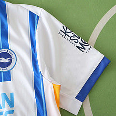- **Official Club Crest and Sponsor Logos**: Proudly displaying the **Brighton & Hove Albion crest** on the chest, along with official sponsor branding, this jersey is the perfect way to show your loyalty to the Seagulls.