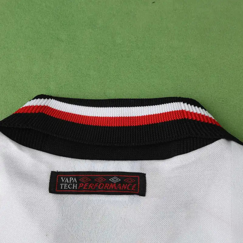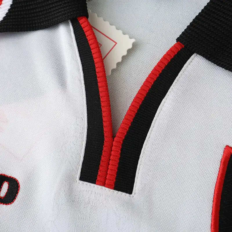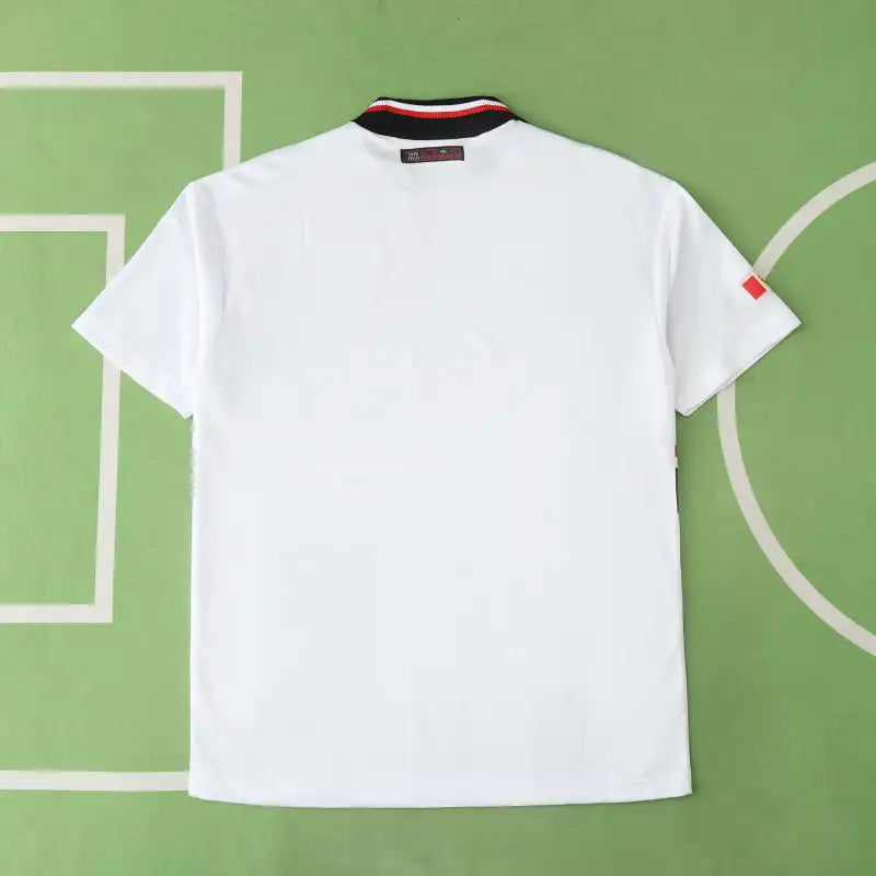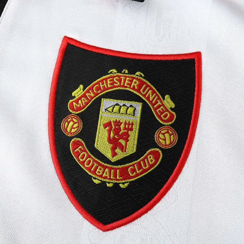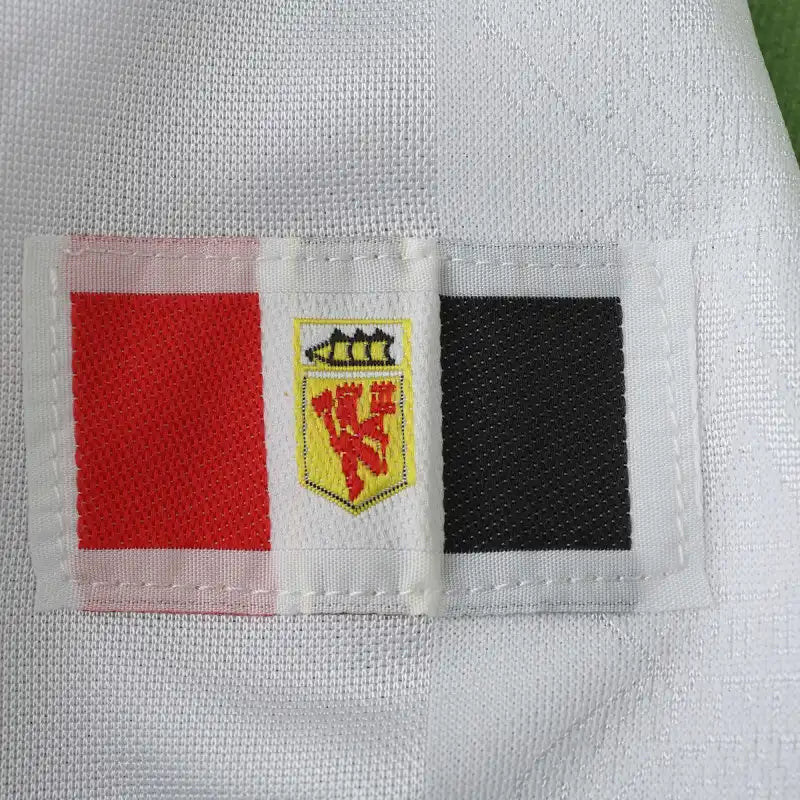 This 1998 away jersey features a clean white base with black and red trim—a classic design from the final years before United's historic treble season. Worn by legends like David Beckham and Ryan Giggs, it represents a team on the brink of greatness.