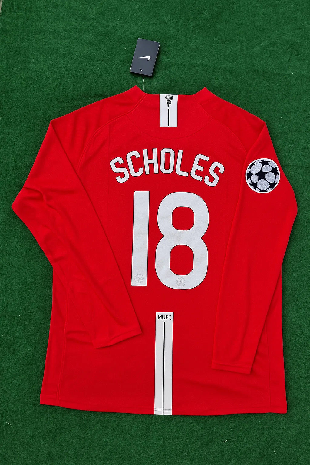 Paul Scholes Manchester United 2008 Champions Leage Final Retro Long Sleeve Football Jersey Kit