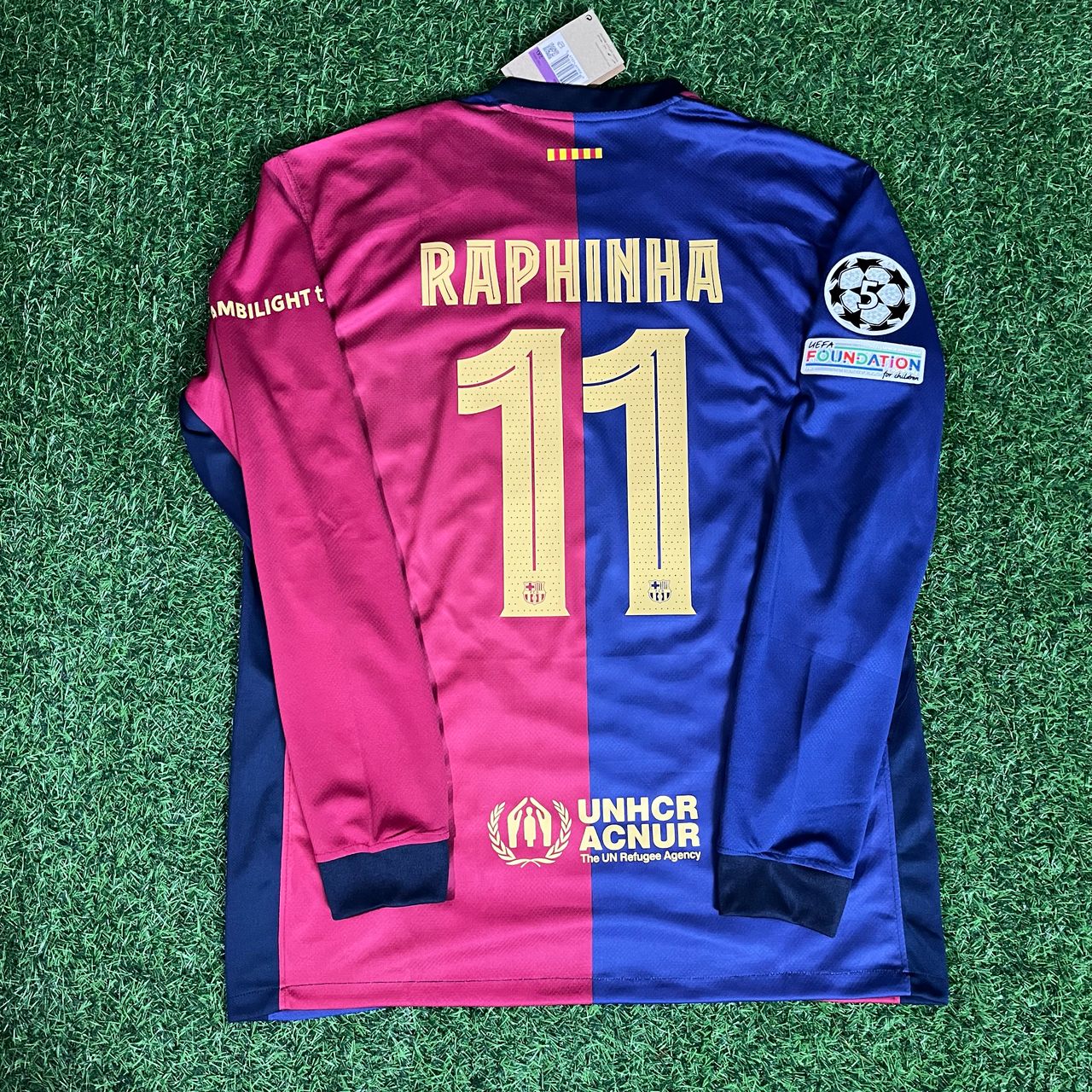 Raphinha Barcelona 2025 Champions League Long Sleeve Football Jersey Kit