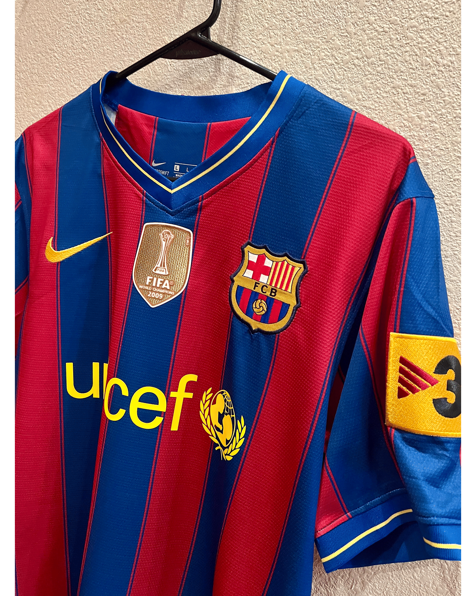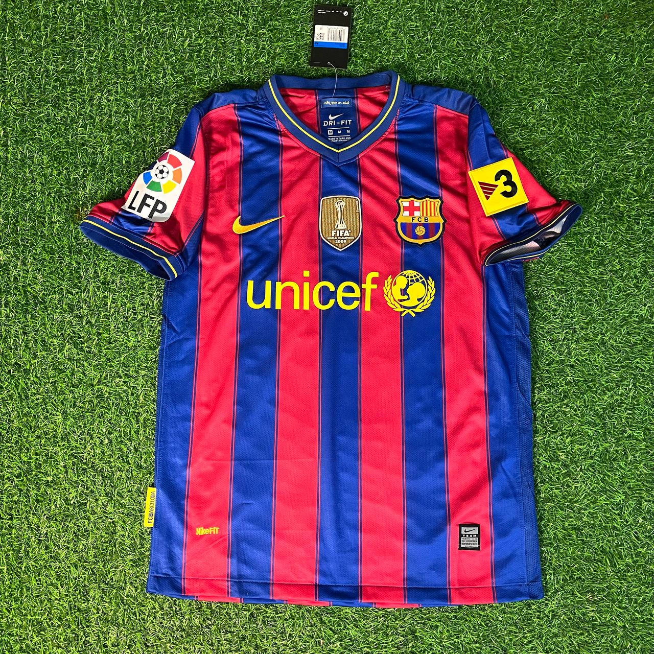 ✅ Iconic Design: Blaugrana stripes, with the Barcelona crest and La Liga sponsor details, reflecting the 2009/2010 home kit style.