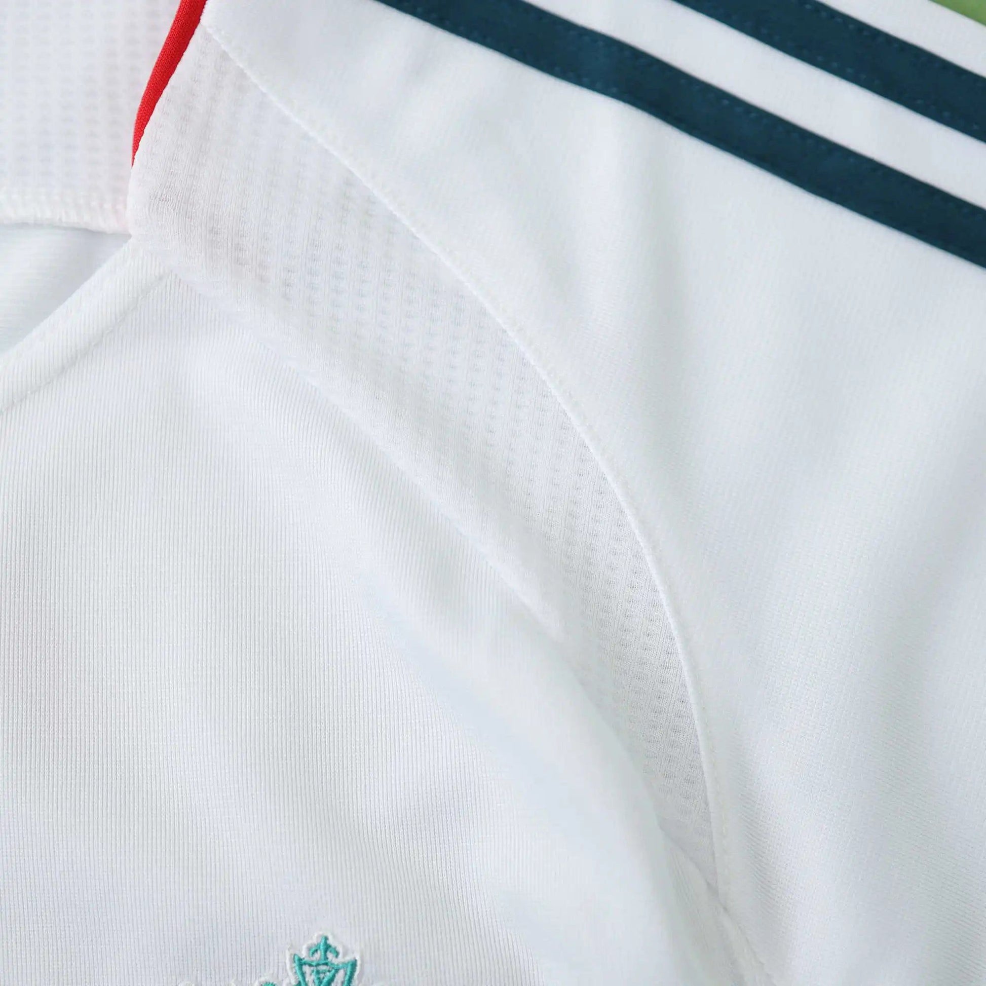 Feel the nostalgia of Liverpool's glory days with the 2006-2008 Retro Away White Jersey! This iconic jersey was worn by legends Fernando Torres and Steven Gerrard. Relive the passion and excitement of these players as you represent Liverpool in style.